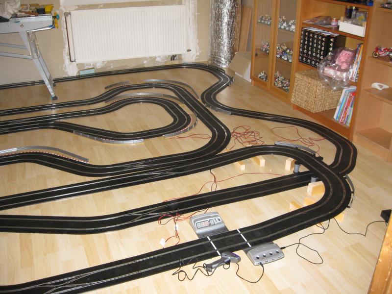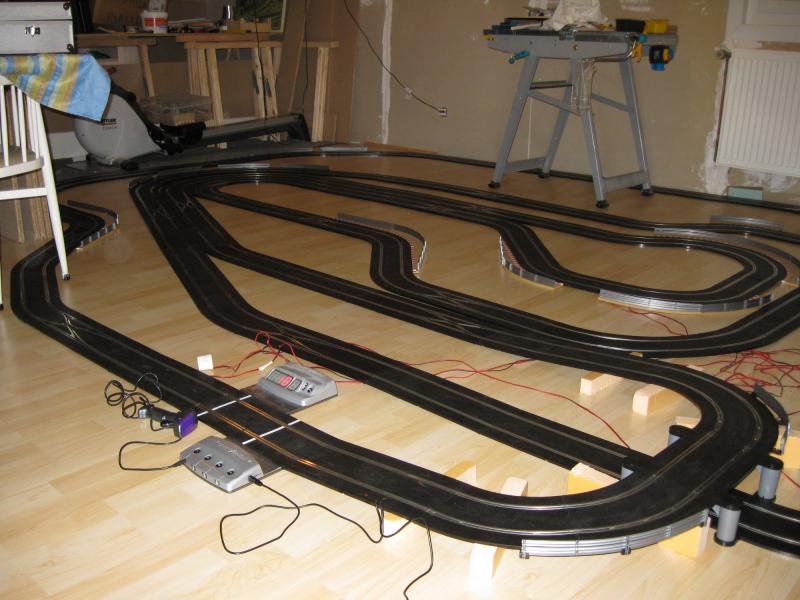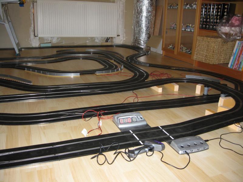 Pour ne pas faire de jaloux, je vous présente aussi un circuit en Scalextric digital, monté à la "va vite" pour un week end avec mes neveux...