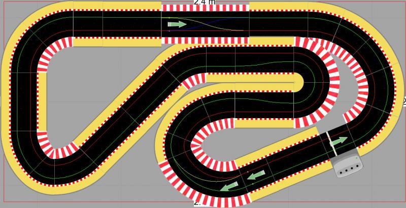 je dispose d'une place de 2.40m de long et de 1.20 m de large a 2-3 cm prés. Sachant que je pense fais un panneaux qui viendrait se rabattre sur le mur donc le circuit déployé sera quasiment entouré de 3 murs (on sera face a la longueur de 2.40m pour piloter ).