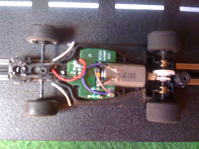 c'est un chassis carrera avec le moteur d'origine.j'ai modifier le chassis en longueur et devant pour les roues.je trouve qu'il roule mieux dans la c4 sue sur la f1