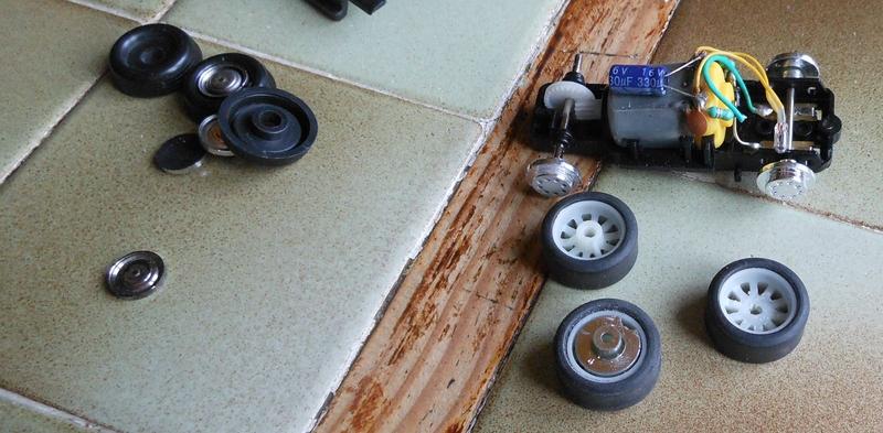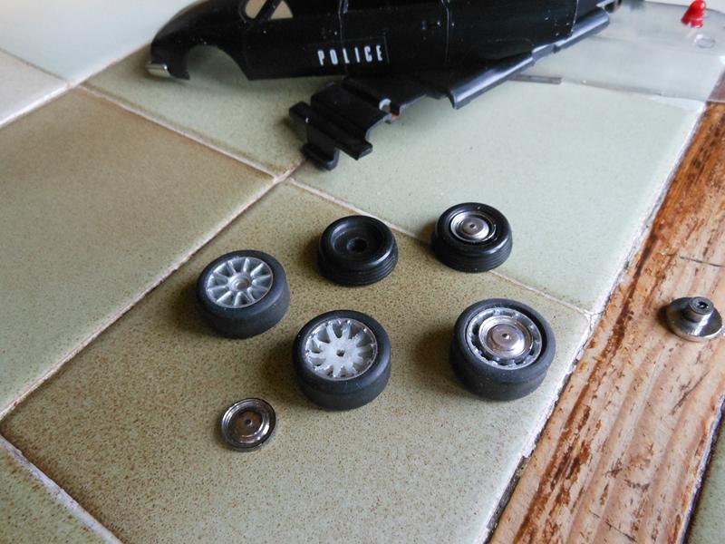 Il y a eu une grosse transformation pour adapter des roues SCX en roues de la CX ( récupération des enjoliveurs du jouet, adaptation aux roues Artin de l' essieu moteur, bouchage des trous restants le long de la jante)