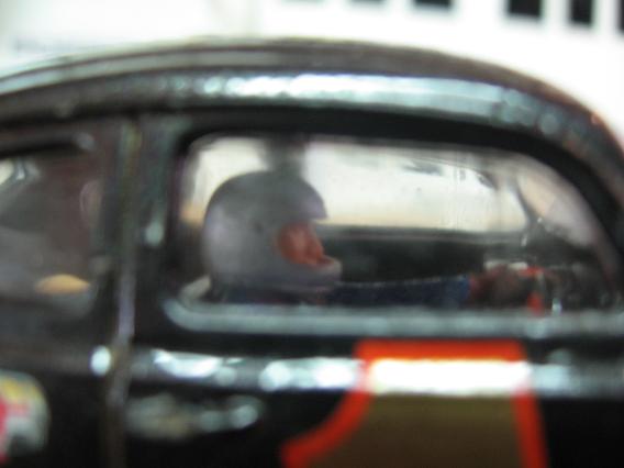 Je suis en panne d'APN en ce moment, mais si ça peut t'aider sur la mienne j'ai mis un pilote de Ninco Classic collé sur une plaque de Canson noir renforcé. Il faut sérieusement amputer le pilote pour le placer à une hauteur raisonnable