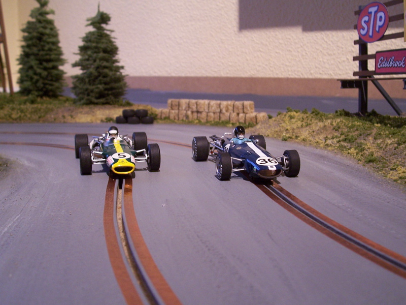 Voila 2 semaines bientôt que j'ai acquis ce coffret ! Les 2 voitures sont magnifiques et finement détaillées par contre sur piste je ne peux dire que qu'elles donnent car je ne l'ai pas encore préparé et essayé ! D'après que ce j'ai lu sur FOLM elles tiennent bien la piste ! Si je trouve les F1 modernes peu originales (elles se ressemblent toutes à mon avis sauf par leurs couleurs) j'ai un penchant assez prononcé pour les anciennes monoplaces !