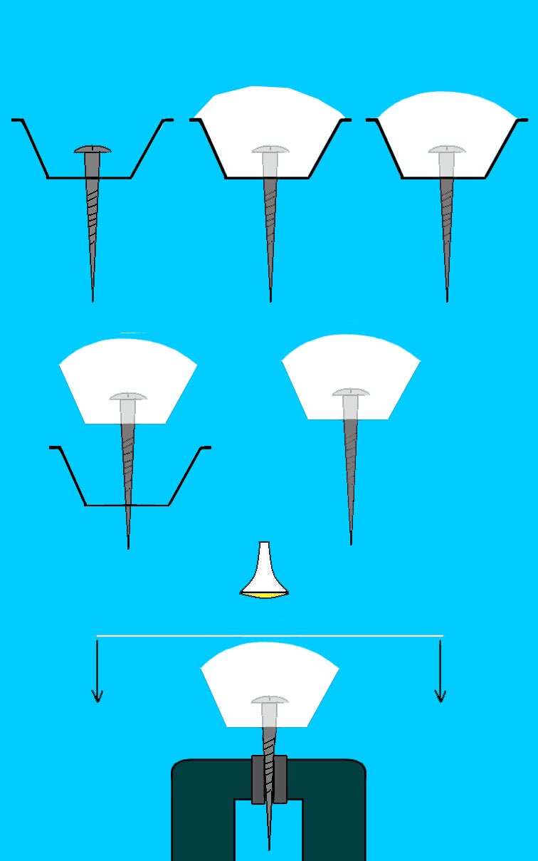 Démoulage en poussant la vis ou le clou par l'arrière.