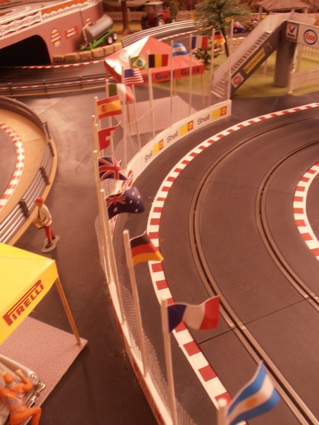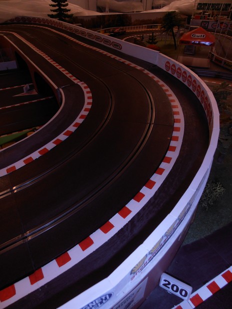 Sur le sujet des murets, je les fais droits en bord de plateau, avec des restes de bois de toutes sortes, peints en blanc. L'aspect est un peu simpliste, mais pour le moment ça me suffit, je ne me sens pas d'y passer des heures pour chercher un rendu réaliste : j'aime trop rouler.