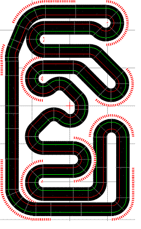 Pour ma piste Carrera, j'ai visser (avec des petites) à l'intérieur de chaque virage histoire que ca n'affecte pas le dérapage, ni la voiture qui roule à l'intérieur du virage...