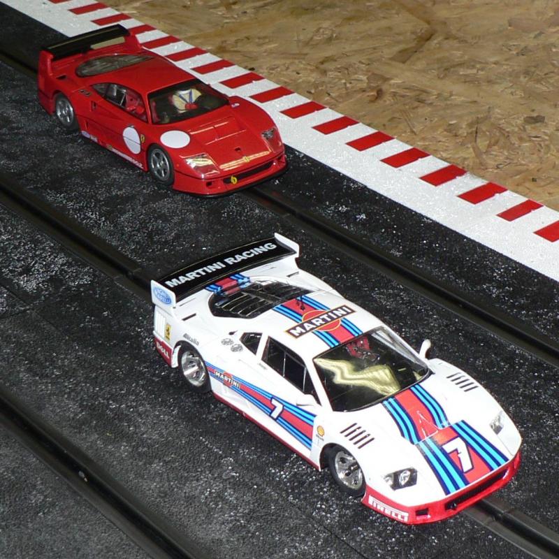 La F40 slot it m'a beaucoup impressionné par ses accélérations, on a d'ailleurs du mal à croire qu'il s'agit du même v12/3 que l'on retrouve dans les audi R8 reloded on sent que cette voiture a un très bon potentiel sortie de boite, comme tu le souligne le tilting à l'air d'être moins facile à régler, certainement à cause de la place que prend la reproduction du moteur...