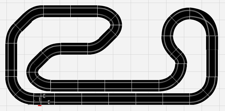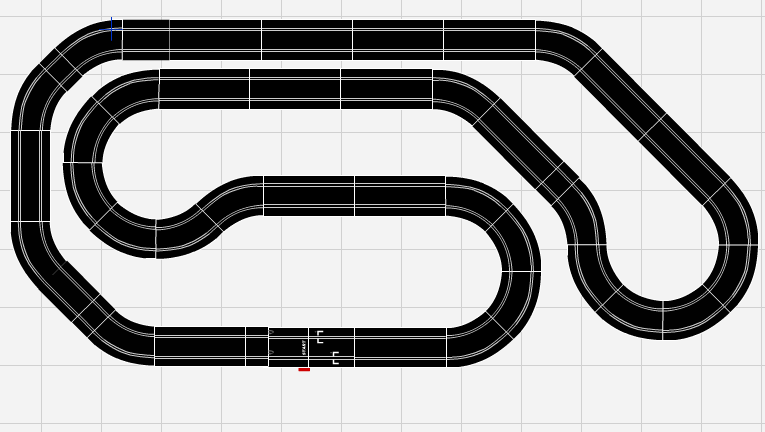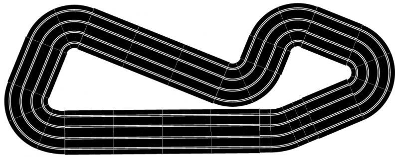 Si tu es prêt à ajouter une douzaine de tronçons et te séparer de certains, voici un tracé plus fluide et plus rapide je pense. Il te permettrait de créer un décor de stands et autres dans tes dimensions. Mais si tu joues avec des novices il vaut mieux privilégier le 4 voies analogique. C'est du SCX ou du Scalex ? Parce que ce circuit est en Scalex et donc tu peux coupler le digital et l'analogique grâce à la nouvelle powerbase. Là ce serait fun comme tu dis.