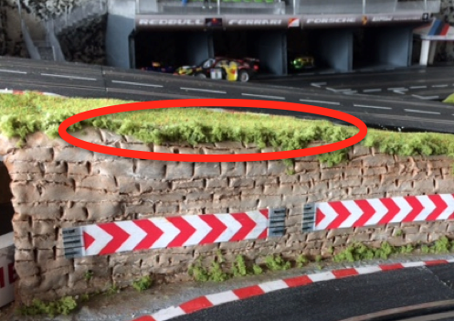 bonjour bravo c'est tres bien réussi ! dans les virages la bande rouge et blanche comment l'as tu réalisée!! merci et avec quoi realise tu tes" buissons" sur l'herbe tapis busch