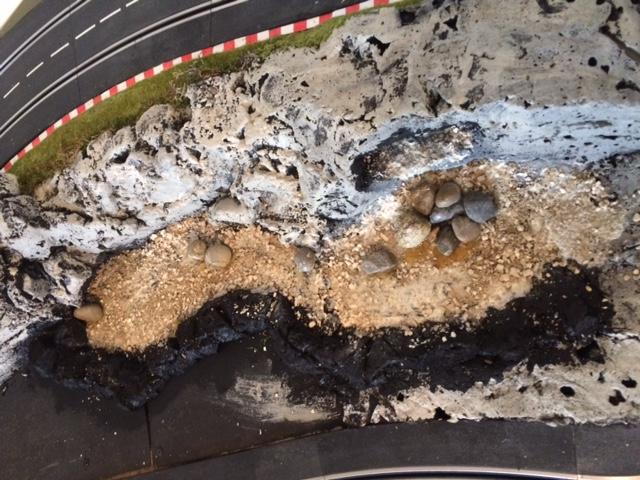 ) et j'ai collé des petits galets "à l'échelle" pour reproduire les rocher qui constitueront le bas de la cascade...