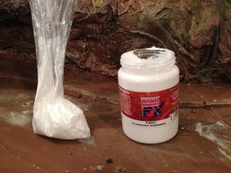 Le fait que cela soit blanc, c'est semble-t-il normal, et cela deviendrait translucide en séchant. J'avais acheté un liquide spécial qui en séchant reproduit des sortes de vaguelettes. Première désillusion en recevant le flacon : il est tout petit... Du coup, plutôt qu'une source, je me retrouve avec un petit ruisseau un jour d'été...