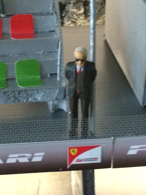Enfin, j'ai trouvé il Signore Enzo Ferrari, qui, désormais, scrute la course depuis le balcon des stands...