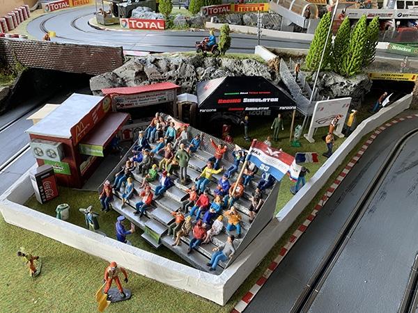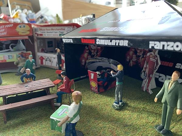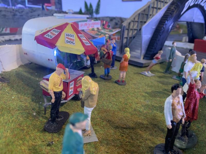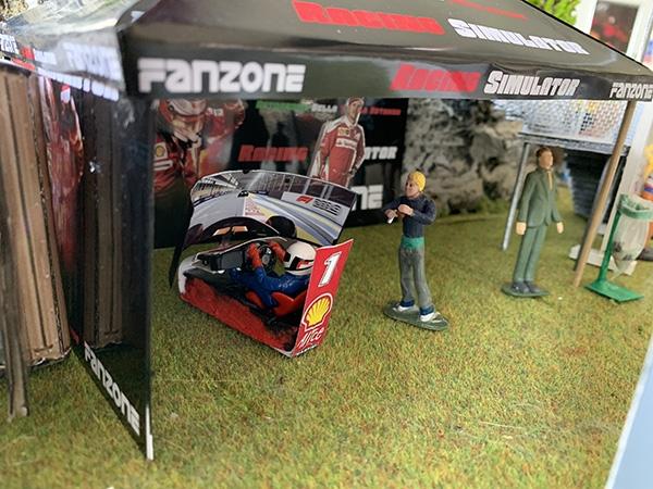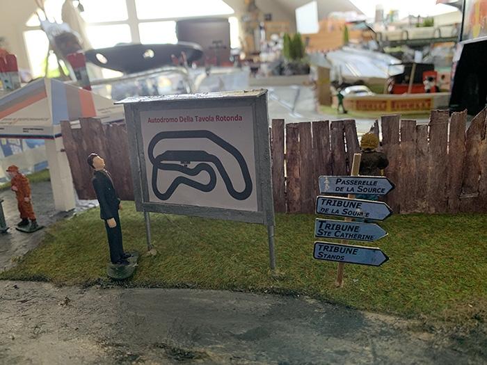 La création de la zone d'entrée du circuit avec la billetterie, le plan du circuit et le parc fermé...