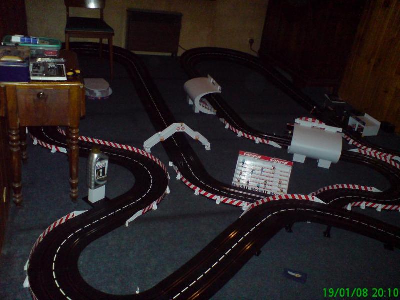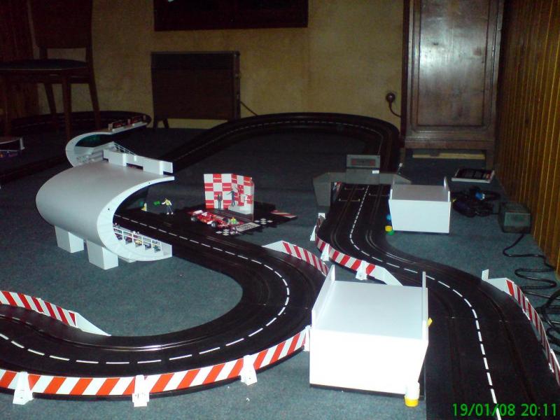 Je suis tout nouveau. Je viens de m'équiper de plusieurs circuit carrera (evolution gt + evolution grand prix + touring car champions en digital + 4 droite standard + pont evolution + kit 26953). Je voudrais faire un grand circuit pour que l'on puisse jouer sur 2 voies (me dire si cest 2 voies ou 4 le mieux) car j'envisage de me prendre les éléments de digital 132 carrera, c'est a dire le pit stop lane+un changement de voie+compte tours electroniques. Je vous joint mon circuit actuel en photo