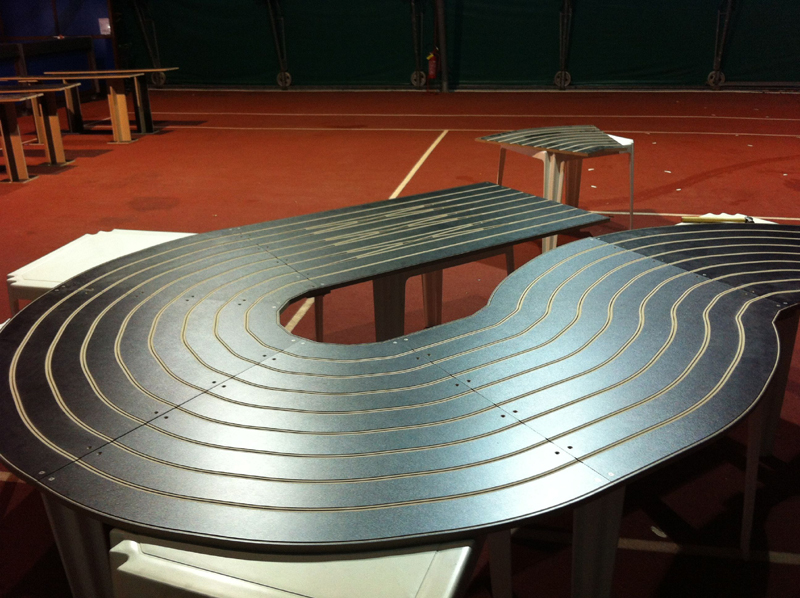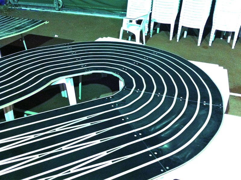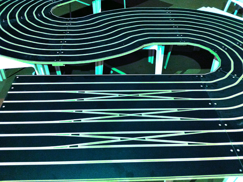 8 PISTES BOIS AVEC PLASTIFICATION STYLE NINCO USE, LARGUEUR CARRERA ET INRAYABLE ,TOTALEMENT OXYGEN AVEC 42 AIGUILLAGES + PIT LANE POUR UN TOTAL DE 55 METRES