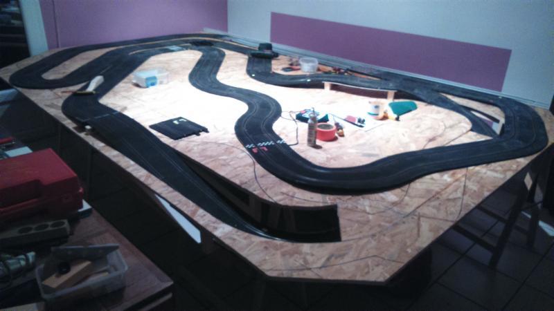 Bon, la place dans la pièce est faîte, le tracé est quasi bon, il ne me reste plus qu'à monter mon plateau. Les dimensions : 4m20 X 2m15 au max, sur une hauteur qui pourrait être entre 65 et 80 cm.