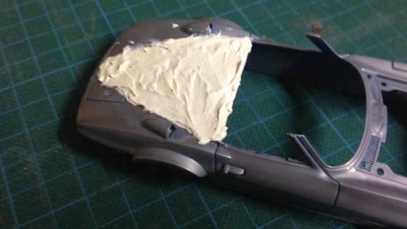 Encore un peu de ponçage et légère couche d'apprêt pour y voir plus clair dans la surface :