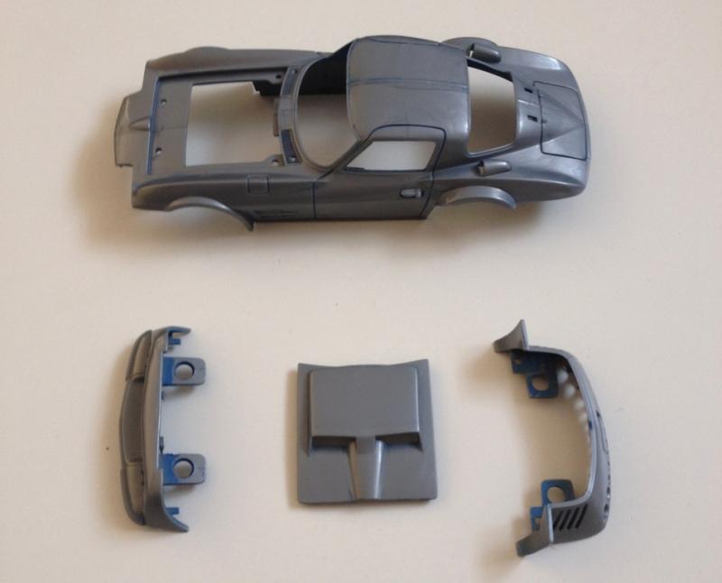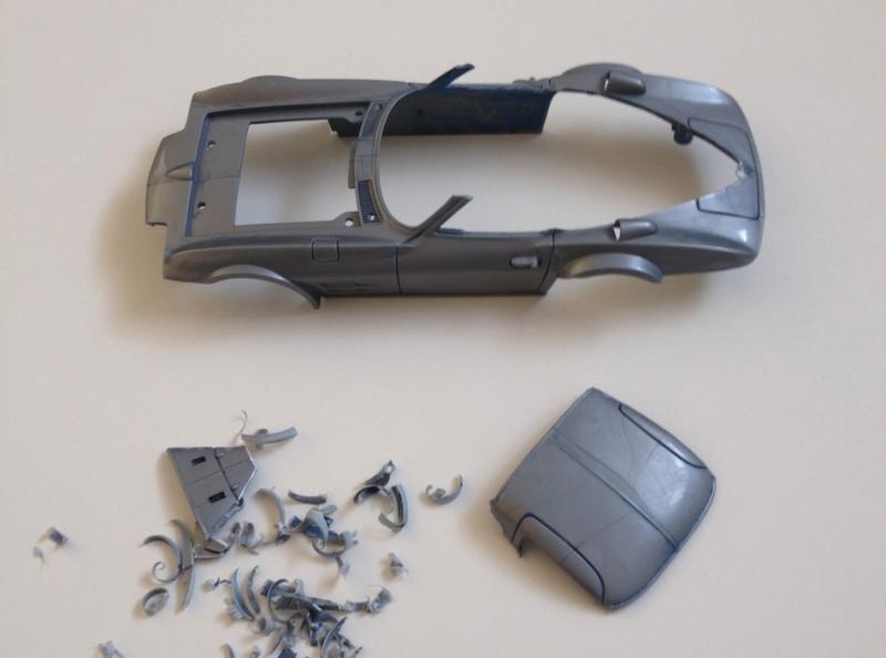 Peu de temps après, je suis retombé sur cette auto à travers le groupe "Slot Car Builder" sur FB ... et j'ai regretté la fameuse résine (qui n'était plus dispo) ... comble de la torture, je n'ai pas arrêté de retomber sur cette GS Roadster à différentes occasions sur le web ... j'ai donc entrepris de modifier l'une des GS revell que j'avais en stock. Voici les travaux depuis le début.