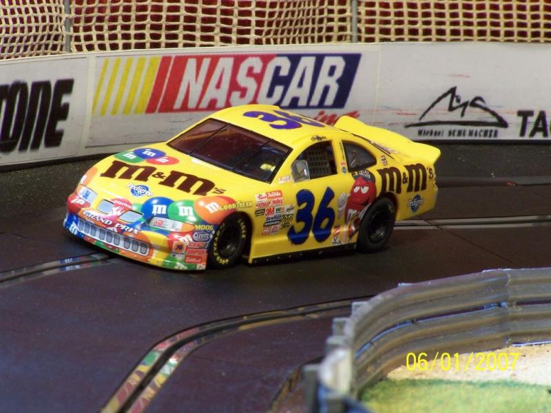 Et seul Scalextric a sorti une voiture de Ken Schrader n° 36 aux couleurs M&M'S sous la référence C2408 mais qui part très chère sur Ebay