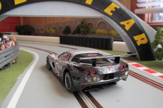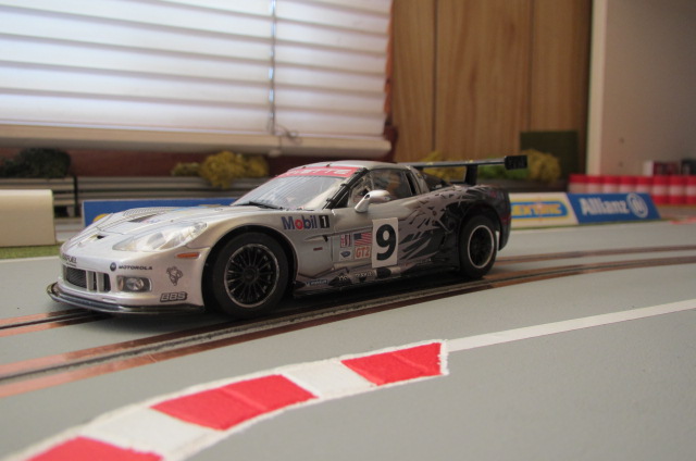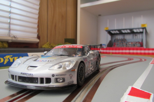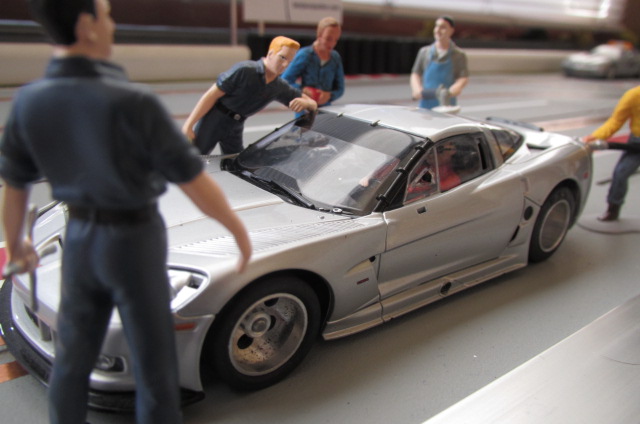 Comme il s'agissait d'une version "civile" à l'origine, j'ai ajouté un aileron de Ferrari et un casque sur la tête du pilote, et puis j'ai adapté les décals (Patto's) de la Corvette jaune et grise du Mans 2010 sur la peinture grise d'origine. Après deux couches de vernis, ça donne ça: