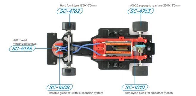 Pour le moteur, je ne sais pas mais je pense que c'est une référence déjà utilisée pour d'autres voitures de chez scaleauto. Besoin d'être confirmé