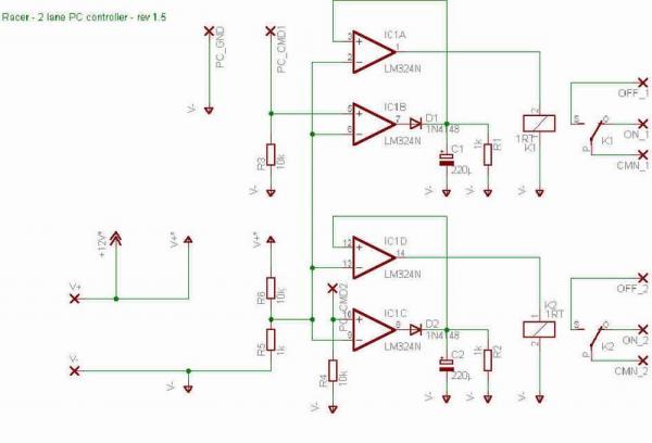 Les relais sont par défaut en position ON de manière à pouvoir tourner sur le circuit même si votre PC est éteint.
