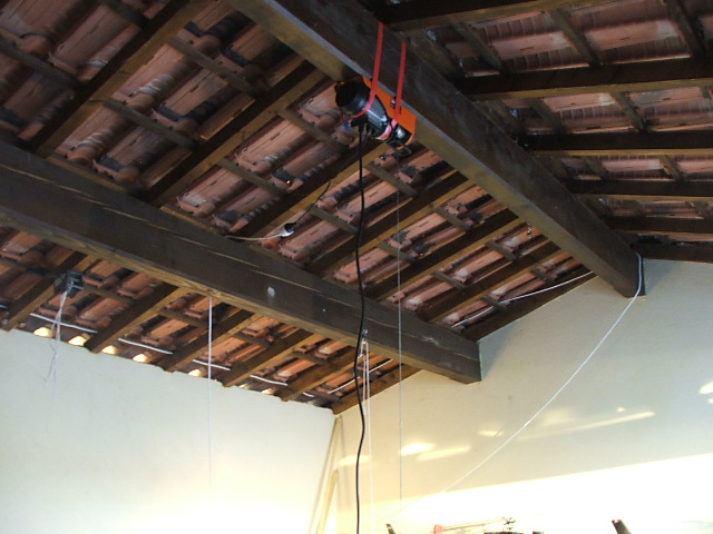 juste une petite question: moi aussi mon circuit remonte au plafond, mais avec 4 cordes verticales au 2/3 de la surface. Le tien remonte avec un cable centrale avec