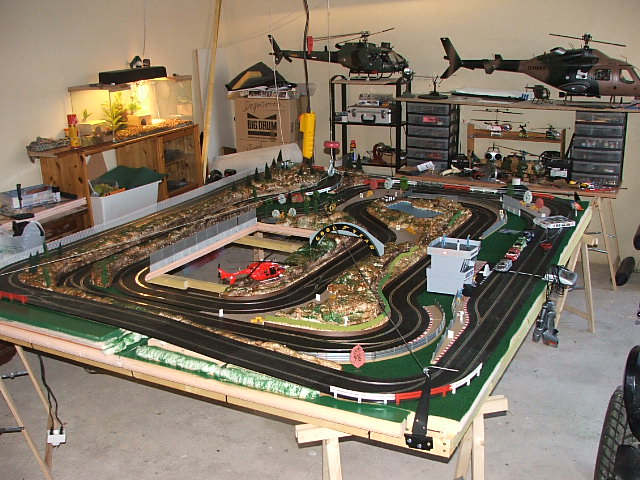 salut,en fait j'ai bricoler comme j'ai pu avec du câble et un treuil électrique "250kg"(82 euros a leroy merlin)le circuit repose sur 4 madriers 4cmx4cm et 3m50/ sur 2m5 ,4 équerres assez costaud fixer sous le plateau avec poser dessus de l'isolent de maison (toiture)en polystyrène epaisseur 4 cm