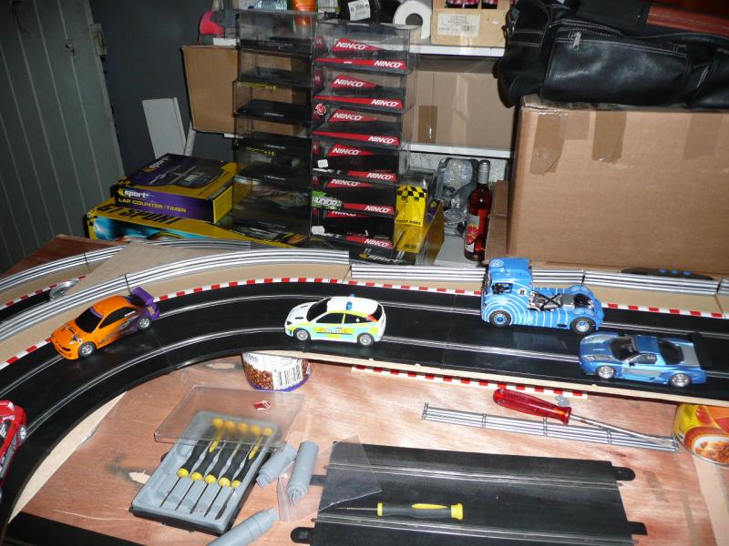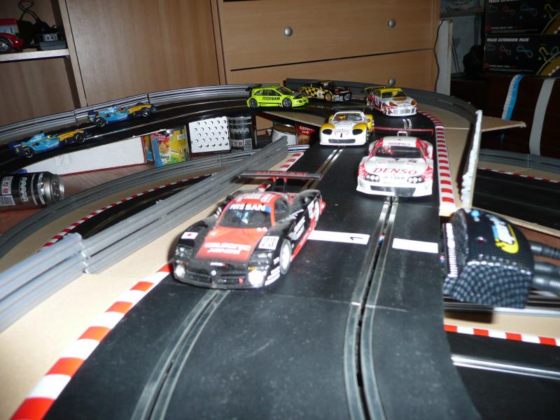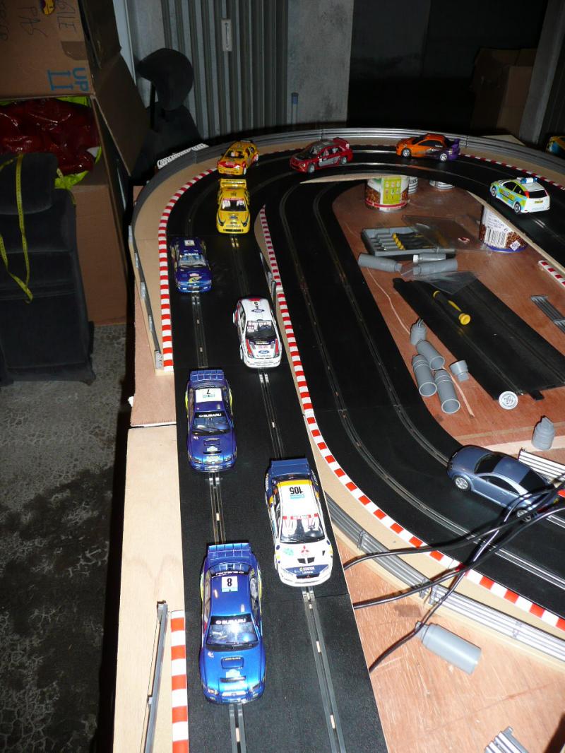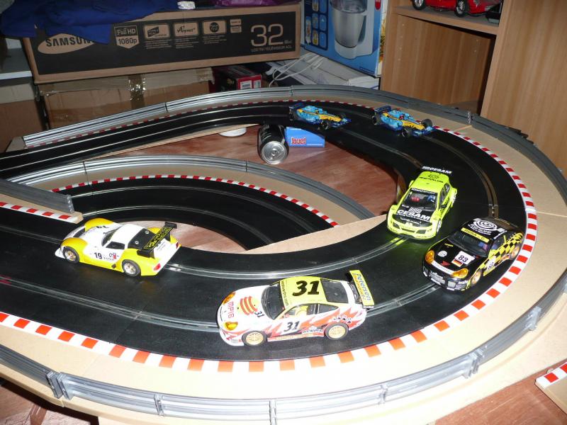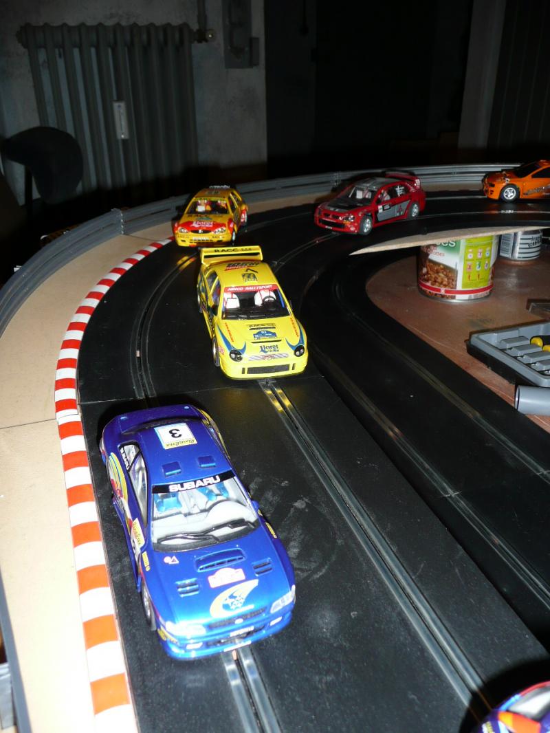 certes la piste supérieure est un peu bancale pour l'instant mais je ne pense pas que ce soit la seule cause.je vais donc paufiner le maniement de la gachette parcque entre les 2 renault f1, l'audi tt et le camion qui collent à la piste et les autres y a une sacré différence. les autres sont capricieuses c'est plus délicat, les sub et ford du circuit world rally classic dérapent beaucoup , la nissan slot it, mégane ninco et marcos fly ont tendance a chassé sévère...