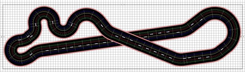 En termes de tracés, je viens de te pondre un petit essai, tout simple, avec à peine 22m de long pour chaque voie. Tes visiteurs apprécieront un circuit agréable à rouler, en revanche il leur importera peu de savoir si le tracé fait 19m, 23,5m ou 28,2m ...