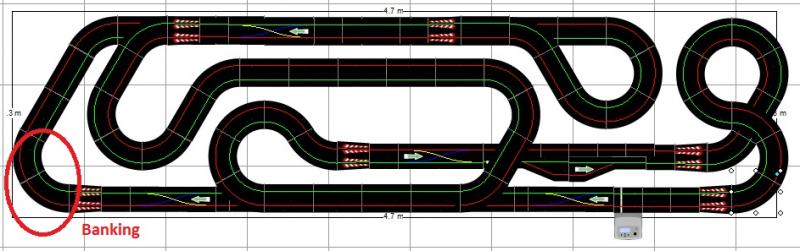 En fait, aprés avoir discuté avec les aminches qui rouleront sur cette piste, nous nous sommes mis d'accord sur le fait que 50cm d'écart sur 2 voies était acceptable de même que la zone de stop&go pouvait etre réduit a sa plus simple expression, la crédibilité de la déco (stands...) n'étant pas la priorité de nos arsouilles futures (même si le circuit sera réalisé façon diorama).