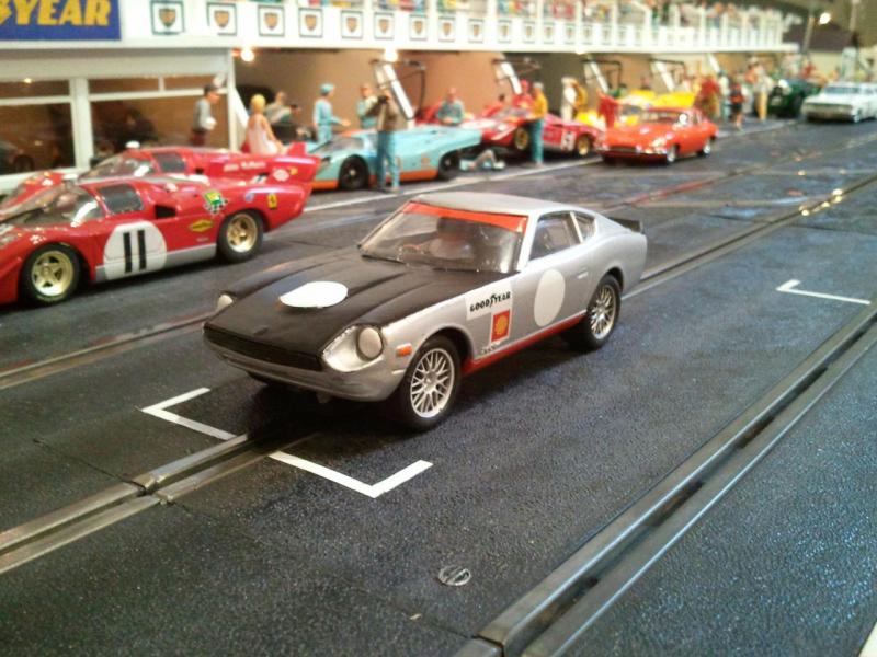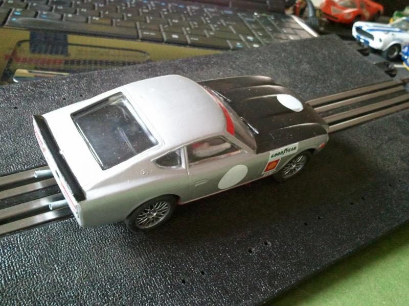 Les essais sur piste sont prometteurs pour une voiture de cette époque avec du matériel d'époque, mai j'ai mis du leste sur le chassis derrière le guide, sinon elle déslote à l'accélération et ne se pose pas assez en virages.
