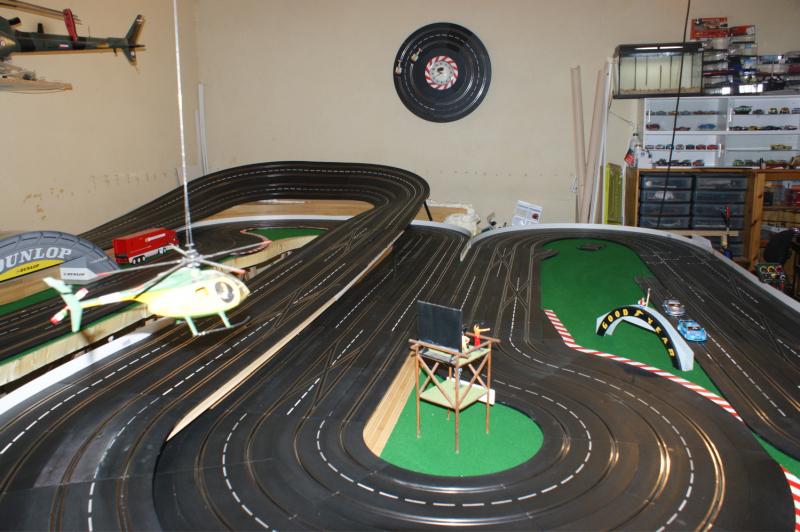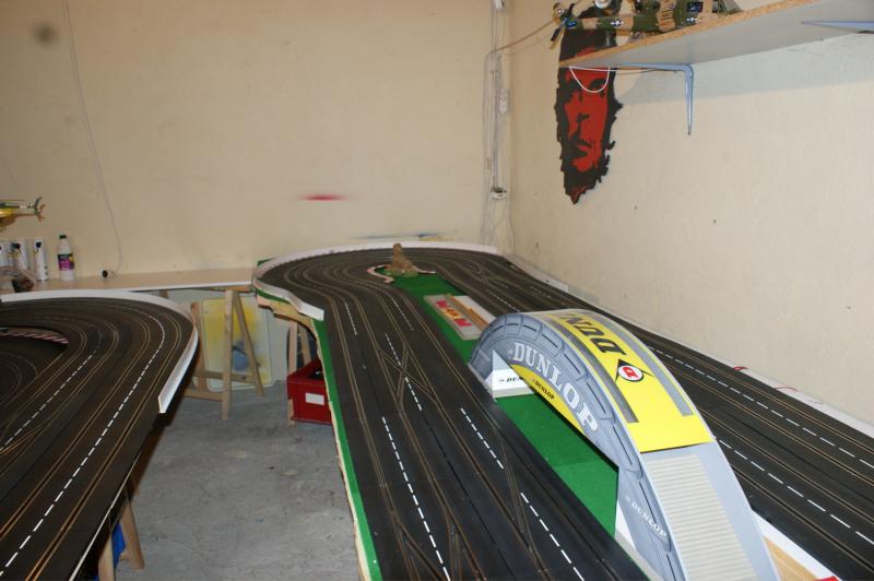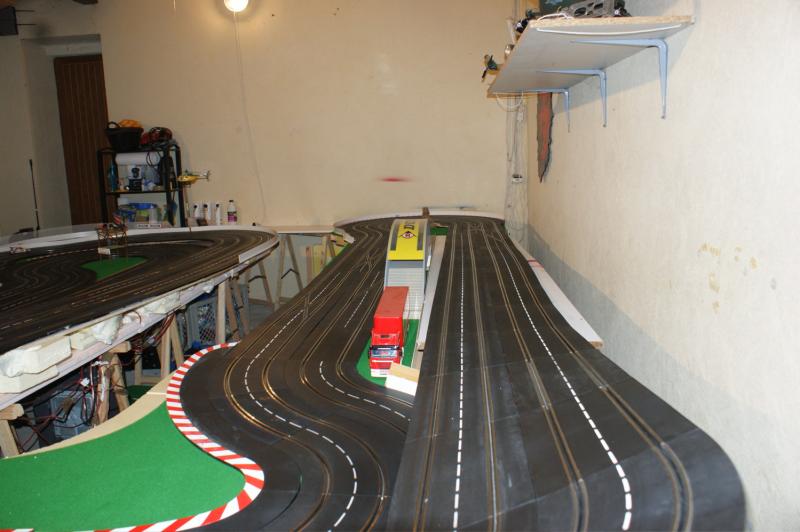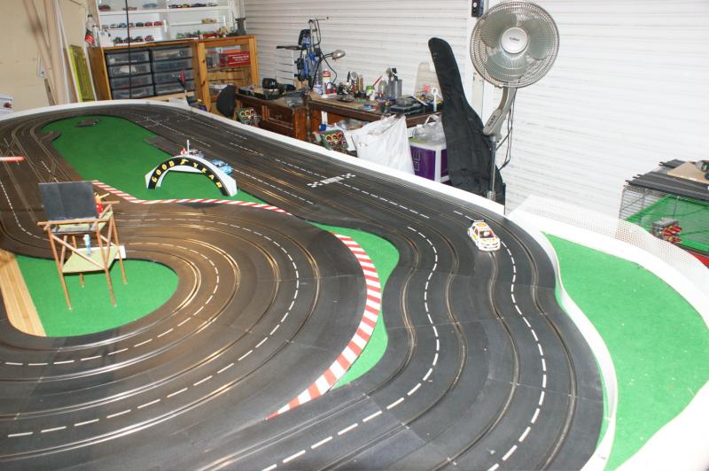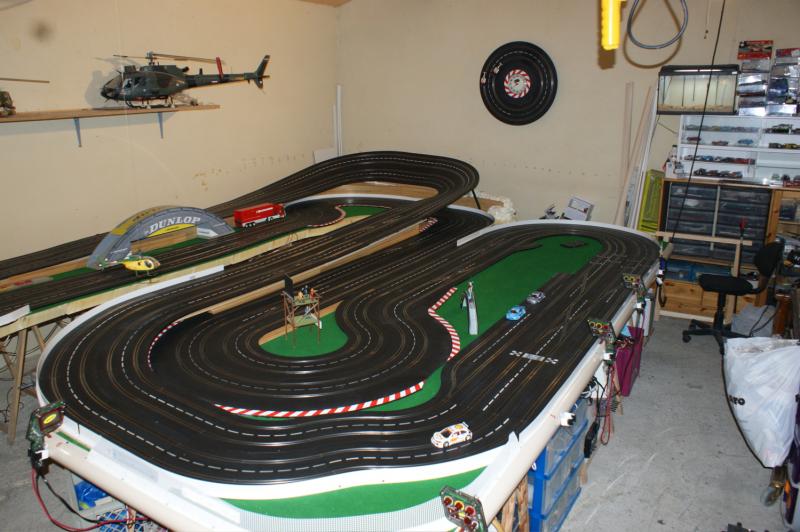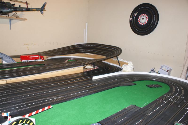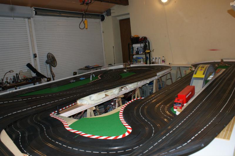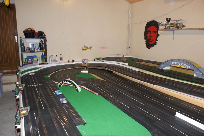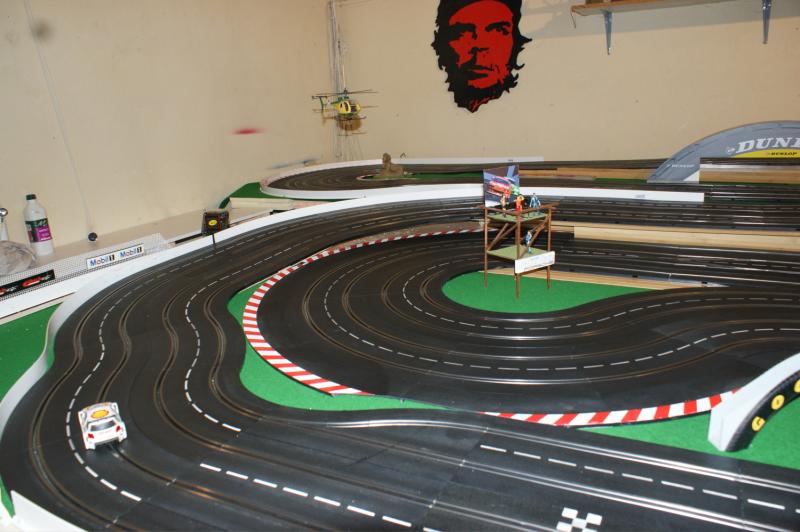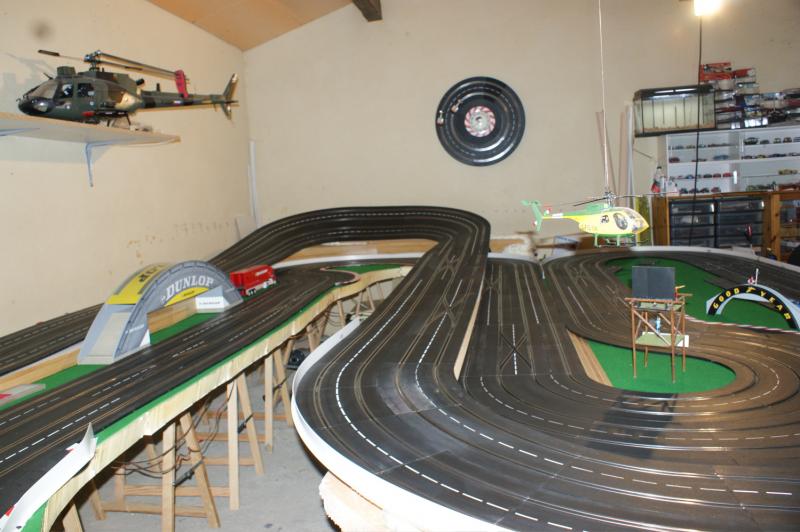 bonjour a tous , j'ai pas résister a mon ancienne piste 4 voie , voilas ma nouvelle piste carrera 132 "digital/analogique" de 32 mètres,16 aiguilles,3 voie pour les courses une pour le ramassage (la voie qui n'a pas de bordure)