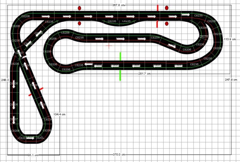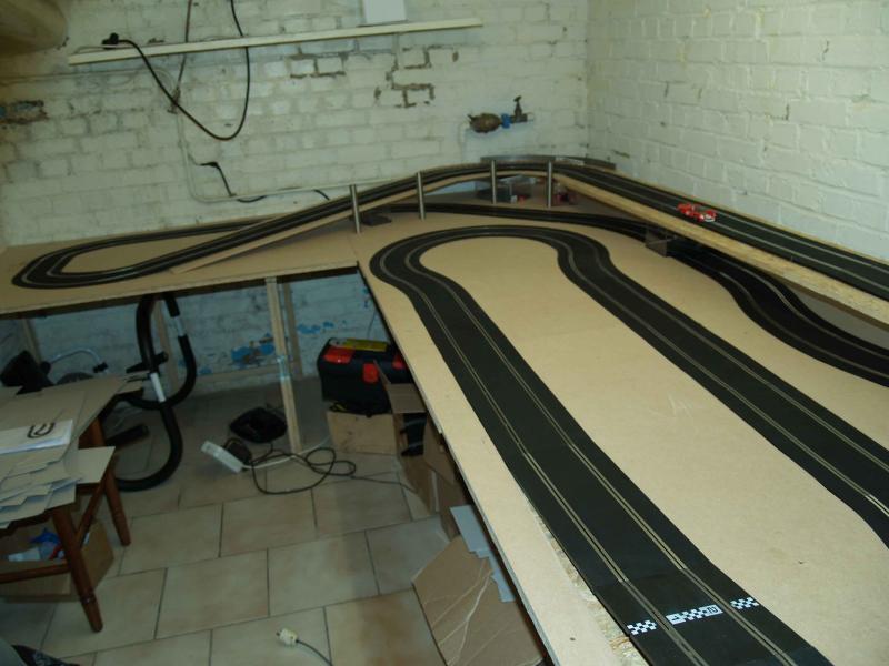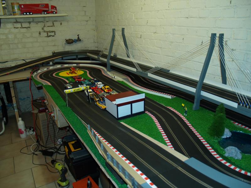 Le tracé est en scalex sport, repeint en noire pour le grip, les rails sont encastrés (enfin le seront bientot ), le tous sur 17 m.