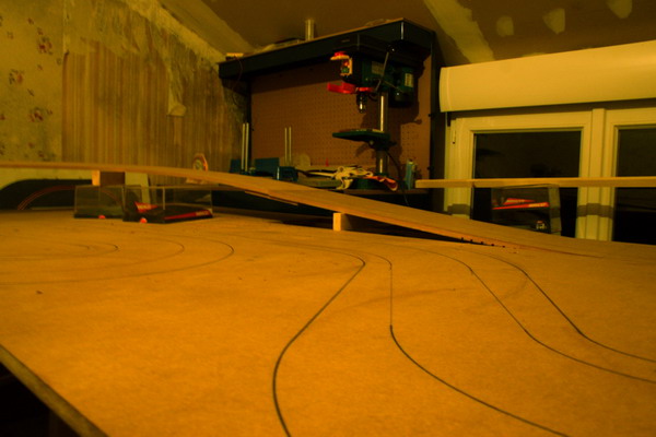 bien sur, il manque tout le "supportage" de l'ensemble, ce qui evitera que les panneaux de MDF de "flambent" entre les piles de pont, et surtout pour respecter une certaine "assiette" dans la partie droite.