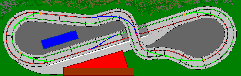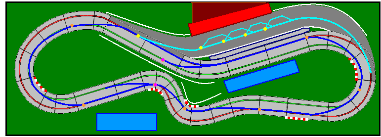 J'ai fait ces tracés pour te chambrer un peu mais également pour te montrer ce que tu peux obtenir avec des rails standard, sur un support de dimensions moyennes et quelques exigences pas toujours adaptables pour un circuit jouable et pas lassant.