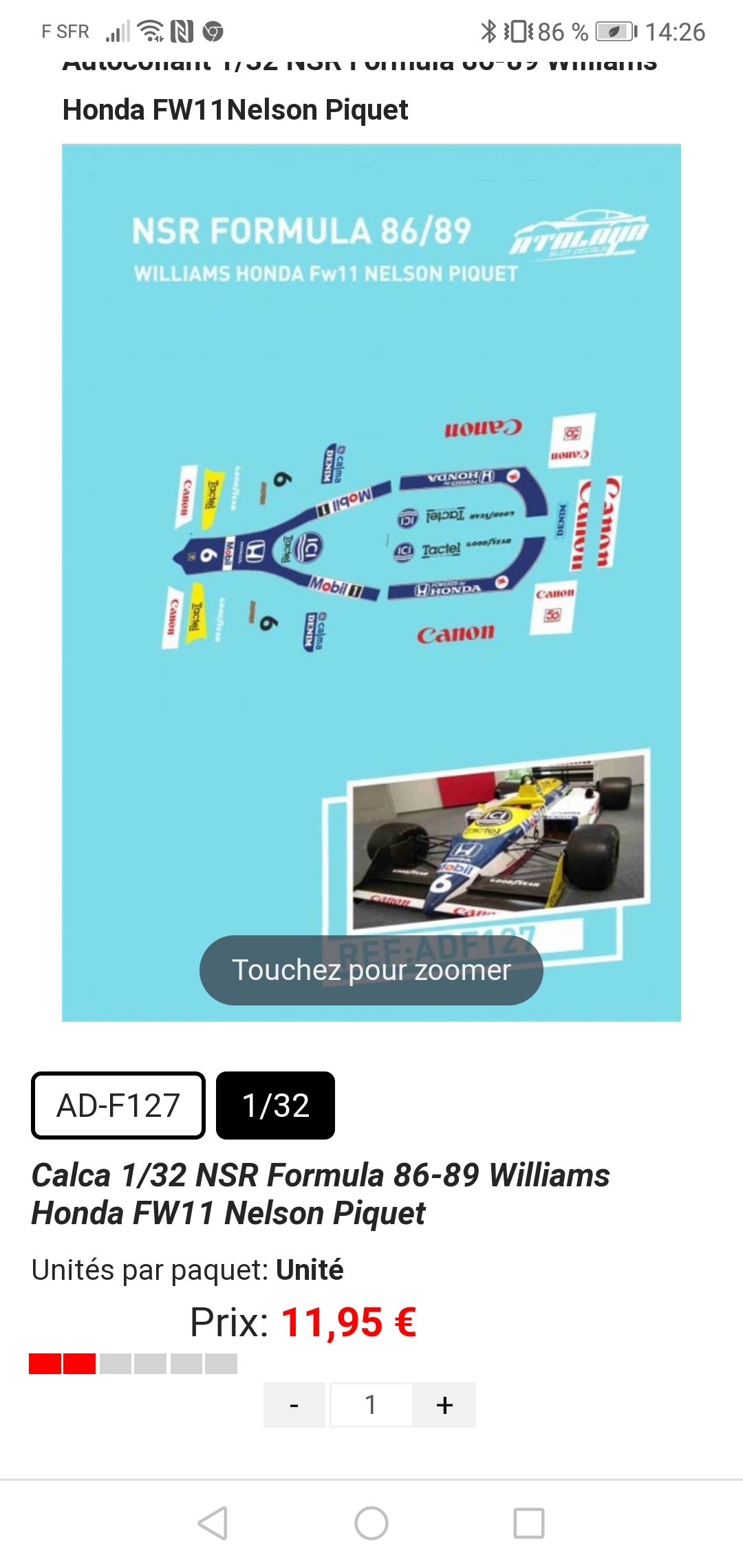 Bonjour , j'etais sur le site de cric crac et ils vendent des super decalcos pour les f1 nsr . Est ce que quelqu'un sait ou on peut trouver la marque Altaya decals . Sp collectale le fait ?