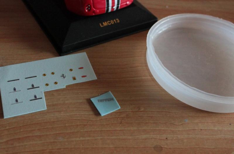 Découper puis tremper le décals dans un mélange d'eau tiède et d'alcool à brûler (70% eau et 30% alcool).