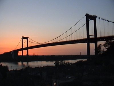quelques infos en + : le pont fait 2.80 M de long en tout ! entre les piles , il y a 1.80 M, les piles font 50 cm de haut, mais au total, elles feront a peine +, car apres le cable, il y a une pointe et une lampe au sommet !!! c'est pour les navions !!