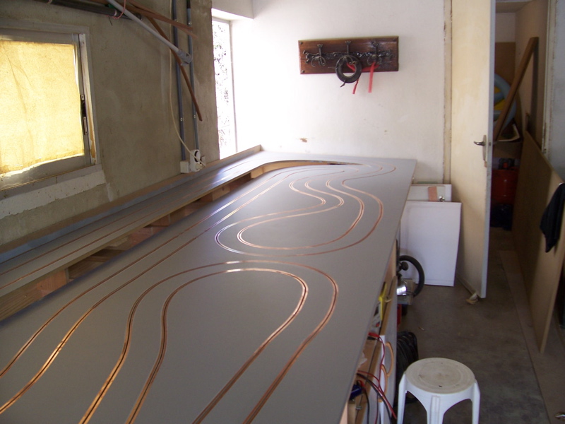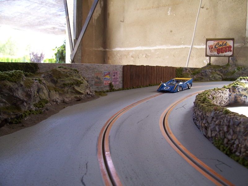 TEUBARD:non,pas de sable dans la peinture......acrylique au rouleau en mousse,et c´est tout!!les voitures glissent juste ce qu´il faut dans les virages......C´EST LE TOP!!!
