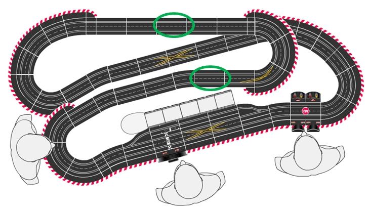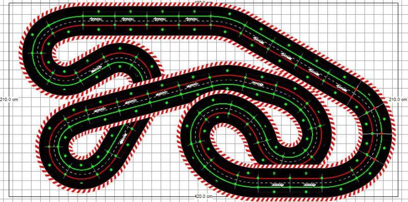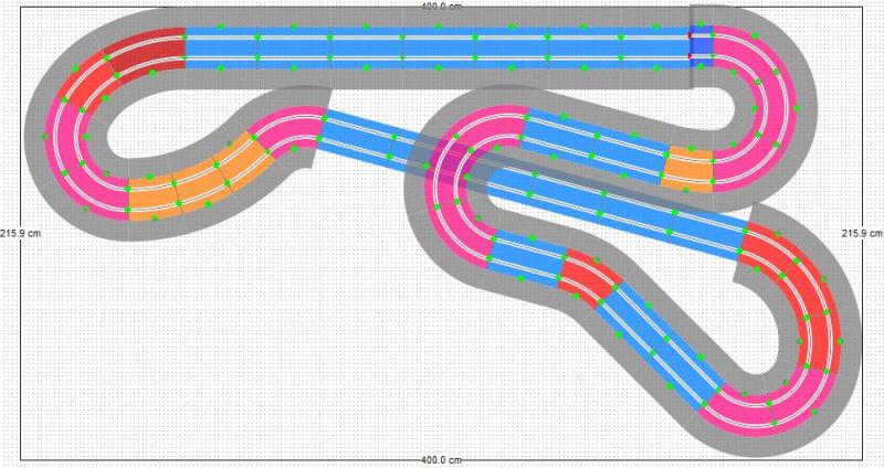 En revanche il n'y a plus vraiment de place pour une pitlane (pas essentielle, mais ludique), et par ailleurs les bordures (qui sont essentielles, elles) se chevauchent (on peut faire plusieurs niveaux, certes, mais cela se chevauche quand même beaucoup et en virage aussi, ce qui n'est pas excellent pour la visibilité).