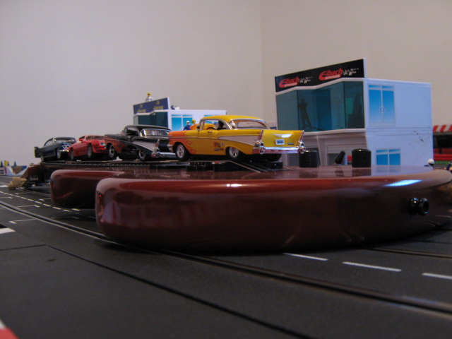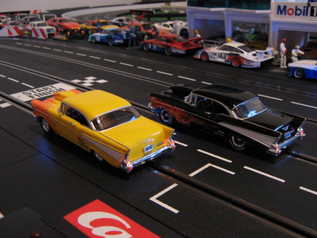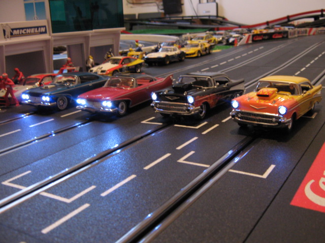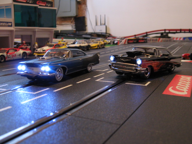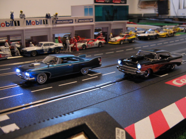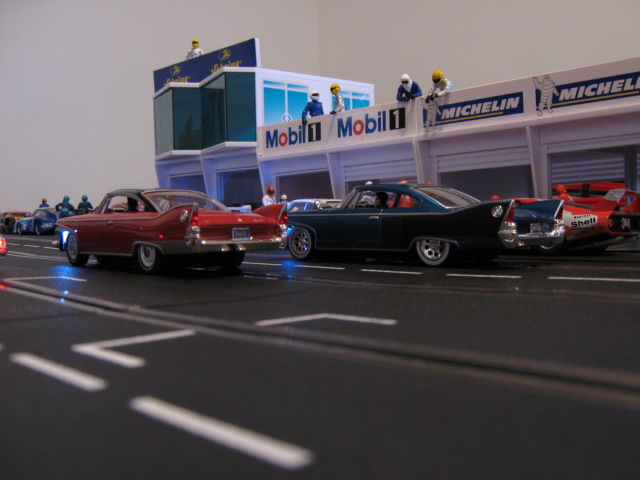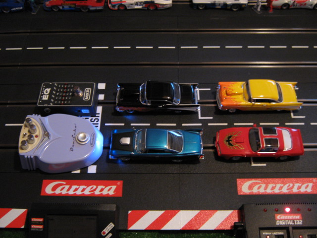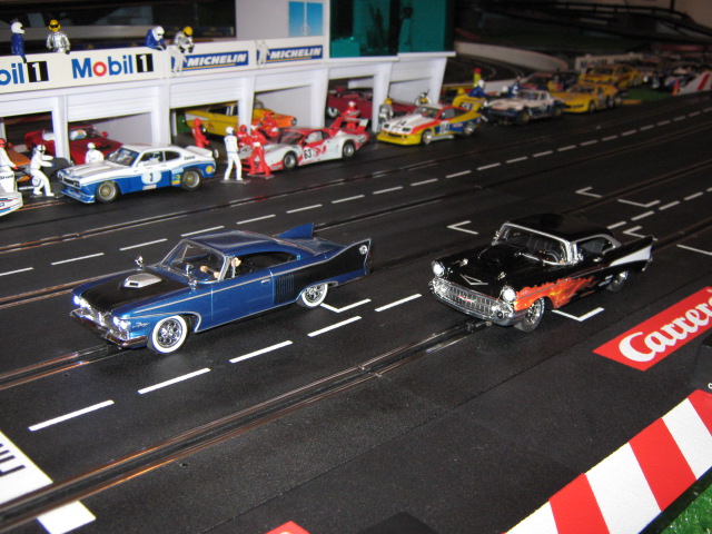 Je demeure au Québec,ces voitures on été achetées a St-Hyacinthe Chez Raoul Chagnon,ca fait un peu loin de chez vous.J en ai vu aux US chez Hotslots132.com et Carreraslots.com.Ces voitures sont d une douceur incroyable sur ma track.Les Plymouth Fury sont les plus silencieuses.Elle ne font presque pas de bruit un fois que le guide devient usé un peu.Les roues sont tres caoutchouteuses.J aime vraiment la Plymouth Fury Custom avec son capot Hemi et ses ¨callers¨ Hemi sur les cotés,sauf que j en ai jamais vu aucune comme ca ici en vrai.Certaines vraies Fury ont eu des 390 pc Hemi sur commande mais l intake d air vient d un Cuda 340-440 Six Pack..aller savoir(???)Les designers de Carrera se sont amusé.La Trans-Am a le nouveau chassis Carrera et les nouveaux magnets.J ai interchangé les pneus: de la Fury custom a la Chevy et de la chevy a la Fury rouge et les flancs blancs de la Fury rouge a la Fury custom.Pas trop compliqué nest-ce pas??mais bien plus beau...J ai assez parlé.Bobye les gars!!