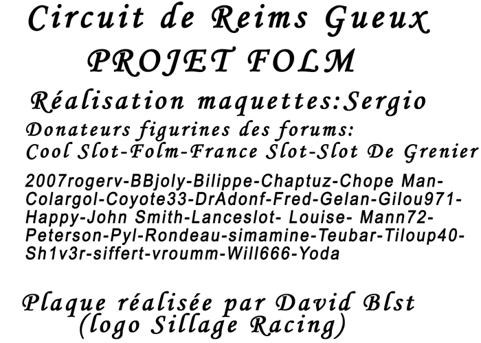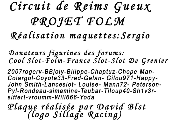Un petit UP de ce message pour signaler (où re-signaler) que les stands du circuit de Reims montés par Sergio seront visibles aux 24 Heures du Folm les 27 et 28 septembre 2014 à Gennevilliers...