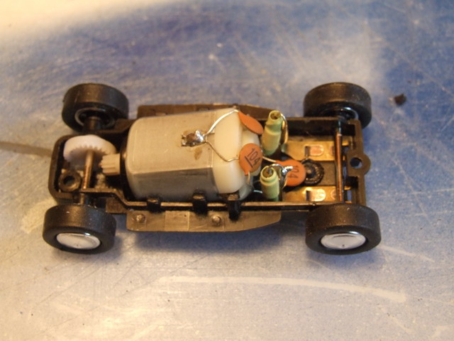 Puis gros coup de chance un chassis avec moteur et tout et tout, qui va pile poil dessus, je crois que c'est chassis de 1:43 (c'était dans mes pièces détachées