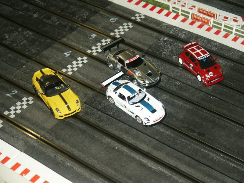 Une Mercedes SLS GT3 de chez Scalauto, beau et super efficace, j'ai quand meme monté le moteur en anglewinder ( avec un support Slot It ) et c'est vraiment top !!