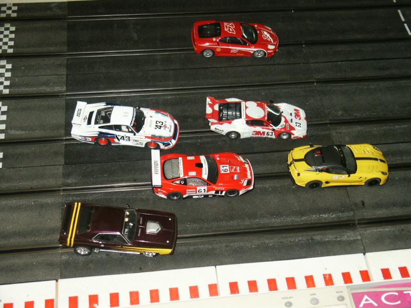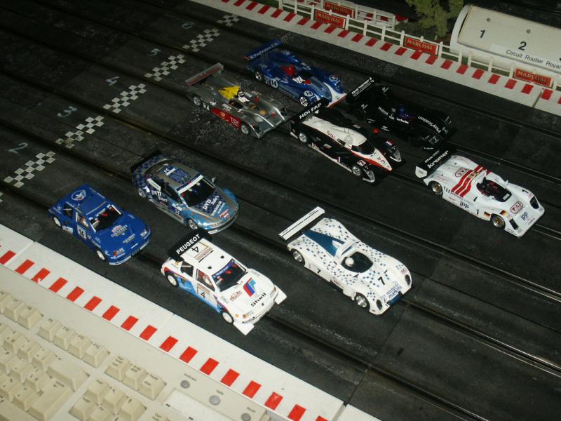 Au premier plan la Ferrari 250 GTO de Racer, c'est tres beau, ça marche très bien et il n'y a rien à faire ( sauf bien sur retirer l'aimant comme toujours )
