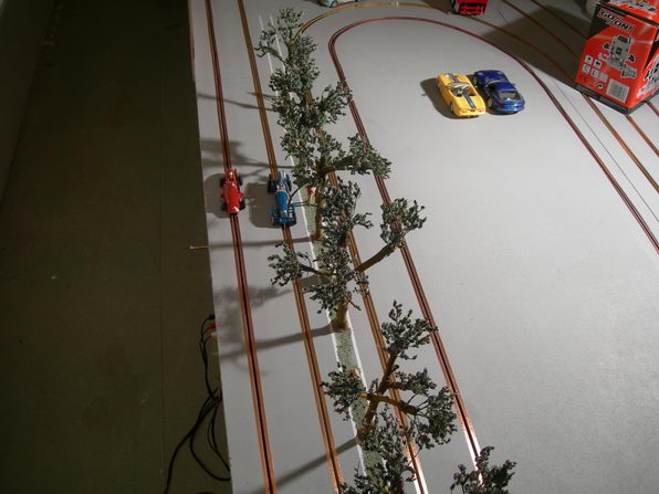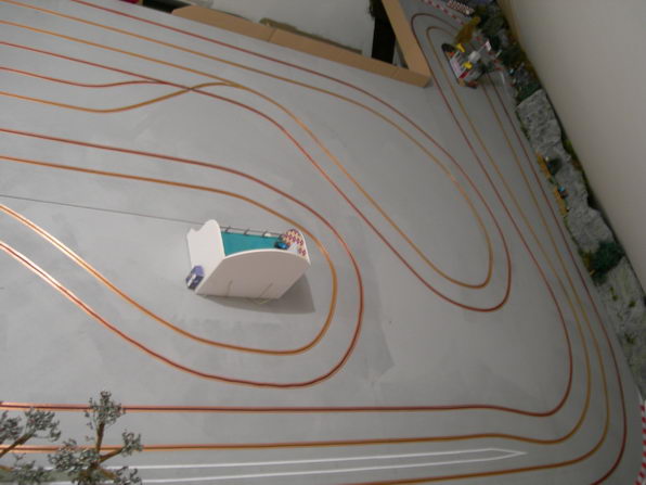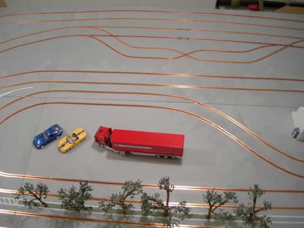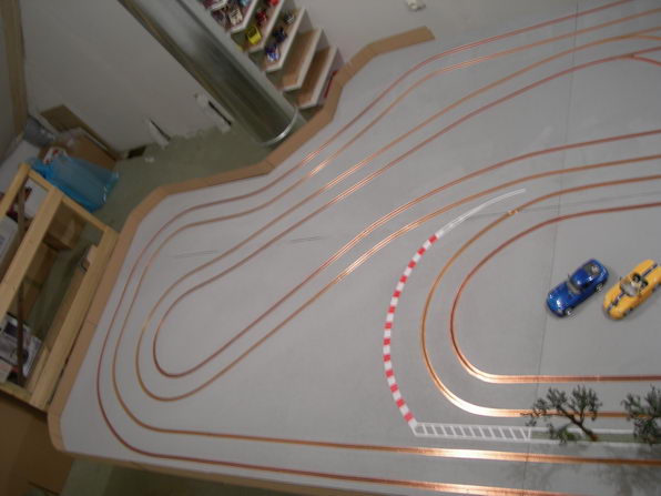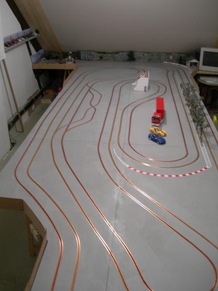 et puis le tout récent "pine creek raceway".. piste bois de..eeuuh......pas beaucoup!! pour vous faire une idée,regarder pendant 5 minutes mon avatar!! plateau de 3,20mx0,90m. en cours de finition...