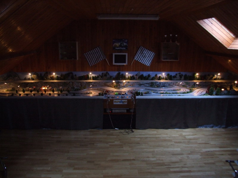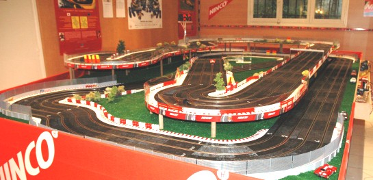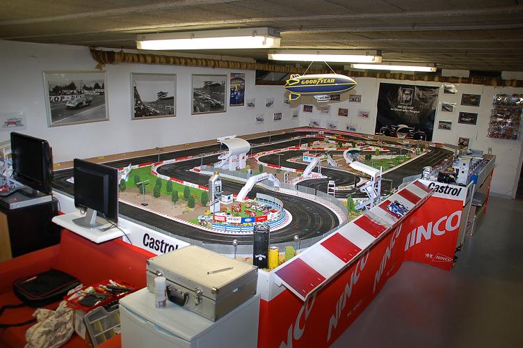 La piste de compette du magasin Ninco 33m 4 voies (que tout le monde connait déjà mais bon, cela peut en inspirer quelques uns... Bob73-74 elle est où la tienne ?? )