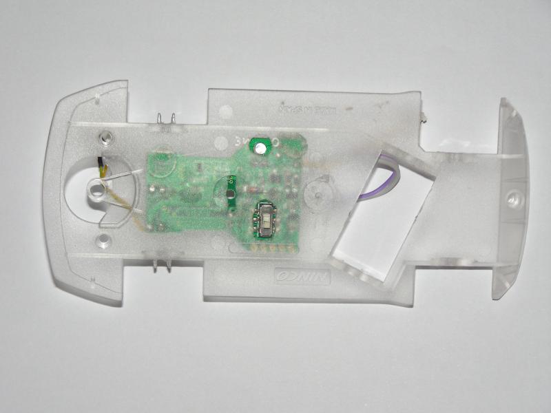 Ensuite j'ai placé la puce en la collant au châssis avec de la colle chaude. (Deux petits points de colle)