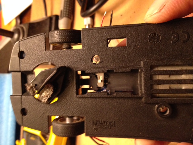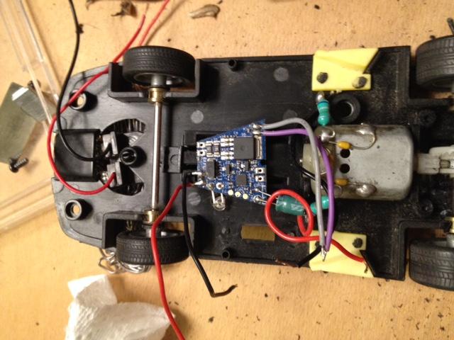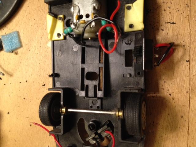 ,la voiture patinait sur place et n'arrivait pas à monter la petite cote de mon circuit...Je n'ai pas fait de photo mais ça ressemble à ça (sans la petite barre aimanté à l'arrière...c'est plus drole sans