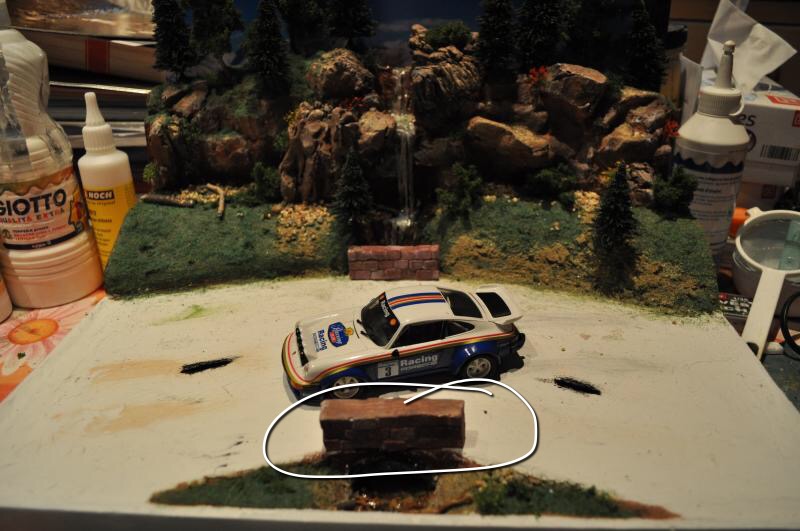 Bravo mon Pepone! Et puis la scrs est tellement une monstruosité, je n'en ai jamais vu en vrai et je l'imagine hurler dans les gorges de Corse... Tu as mis de l'herbe et des cailloux sur le talus, tu as bien fait, ça rend bien. Bon, petite remarque... Ton duo semble être en courbe, j sais que tu n'a pas fini ta route, mais je pense à tes deux parapets. Pourrais tu leur donner une légère courbure? Quelques vous de cutter pour casser les arêtes... Peut être que non.. Amha